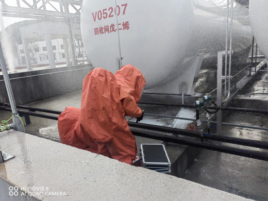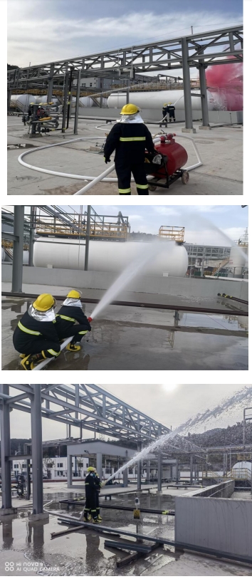 3.模拟真实事故,开展实战演练。本次演练涉及了罐区泄漏堵漏、抢险救援、人员救护、泄漏区域安全警戒、泡沫覆盖、消防水降温、环境监测、善后处置等工作,充分考虑到了公司安全生产事故应采取的安全处置程序和应急救援措施。