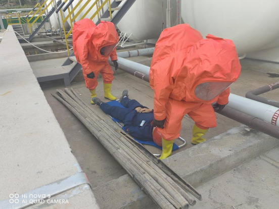 1、演练人员对演练装备的使用操作不够熟练,比如空气呼吸器、重型防化服、消防战斗服的穿戴,担架的使用都需要练习熟练,操作动作连贯性流畅性都需要提高。